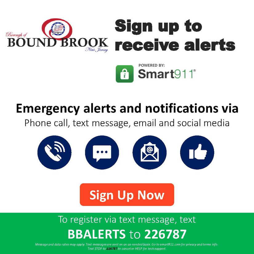 The Borough of Bound Brook now uses Alerts powered by Smart911 as our official emergency notification system.