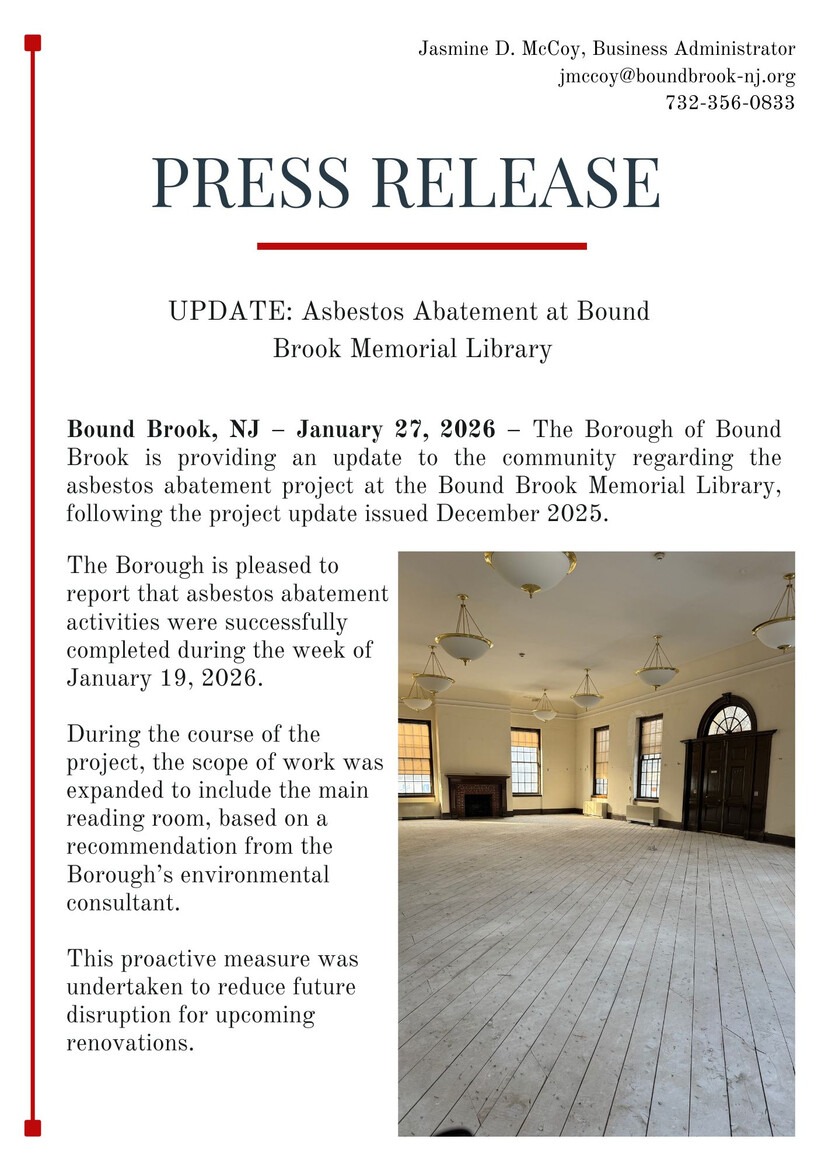 Borough of Bound Brook Gives an Update on the Bound Brook Memorial Library