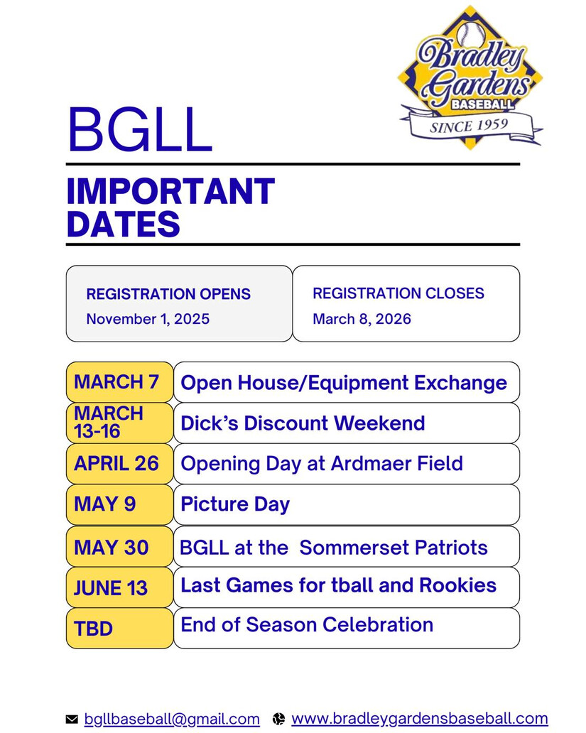 Bradley Gardens Baseball - Important Dates