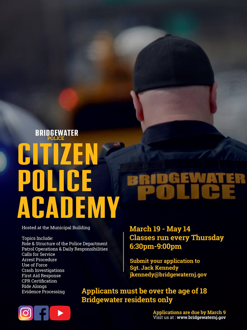 Bridgewater Police - Citizen Police Academy - March 19th - May 14th