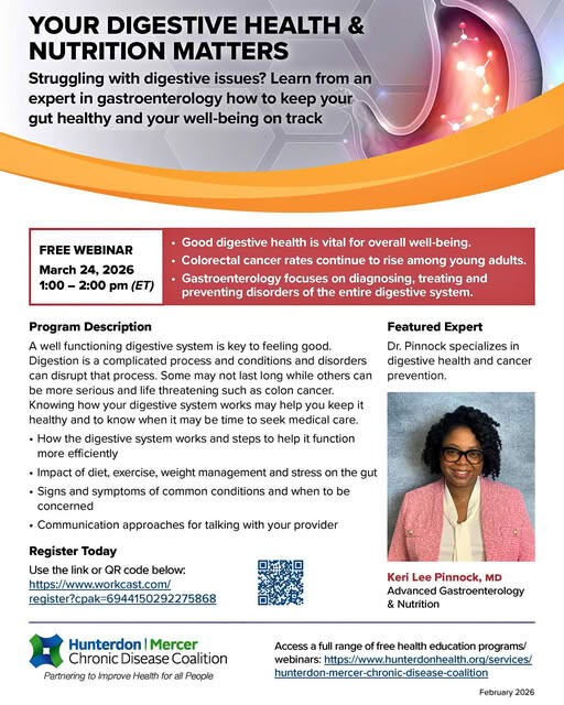 Hunterdon & Mercer County Regional Chronic Disease Coalition - Digestive Health Free Webinar on March 24th