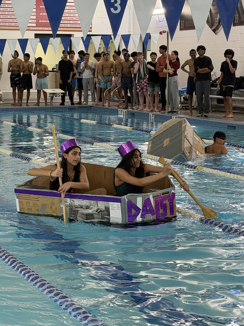 For this year’s Cardboard Regatta, students stepped out of the classroom and into the pool to prove that physics isn’t just theoretical—it floats. Under the guidance of physics teacher Shawn Templin, teams were challenged to design and build a full‑sized, seaworthy vessel using only corrugated cardboard and duct tape.
