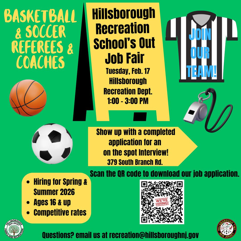 Hillsborough Recreation School's Out Job Fair for Basketball and Soccer Referees & Coaches