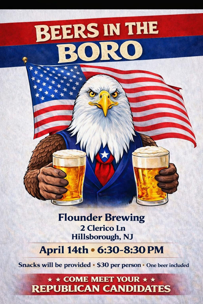 The Hillsborough Township Republican Club - Flounder Brewing on April 14th from 6:30-8:30pm