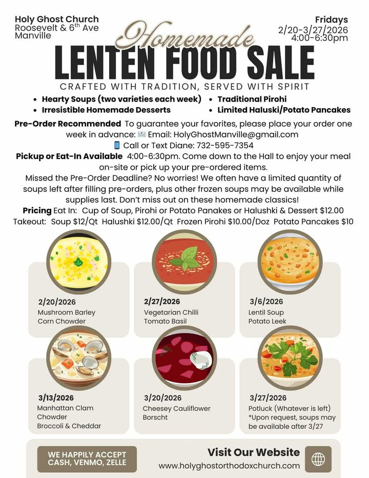 Holy Ghost Church - Manville - Homemade Lenten Food Sale - Fridays 2/20 - 3/27