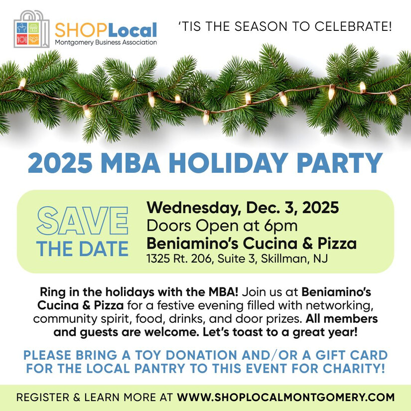 As the holiday season settles in, Shop Local Montgomery and the Montgomery Business Association (MBA) are welcoming the community to one of their most anticipated annual traditions—the MBA Holiday Party, set for December 3rd at Beniamino’s Cucina & Pizza in Skillman.