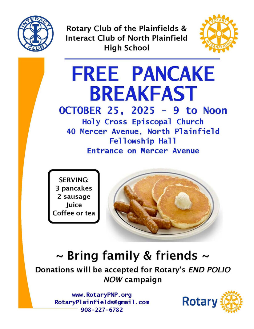 North Plainfield - Free Pancake Breakfast - October 25th 9am to Noon