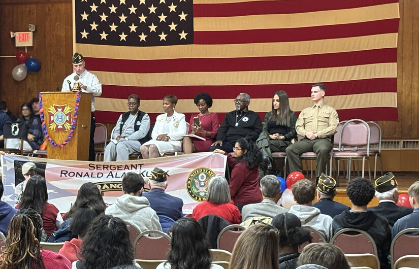 BRIDGEWATER – Students in Edward Graf’s Social Studies classes at Somerset County Vocational and Technical High School (SCVTHS) recently spent a day acknowledging and honoring veterans and Gold Star families. The event, held at a local VFW Post, featured speeches, food, and an opportunity for students to spend time talking to service members and their families, who provided a glimpse of history as seen by those who experienced it first-hand.