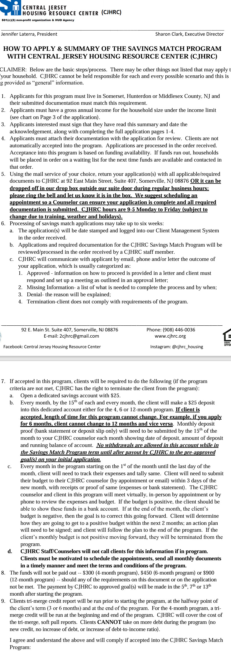 The Central Jersey Housing Resource Center (CJHRC) offers a Savings Match Program designed to help local residents build financial stability. The program not only provides a matched‑savings opportunity, but also teaches participants how to save consistently, manage a budget, and plan for long‑term financial goals such as moving costs, security deposits, or homeownership preparation.