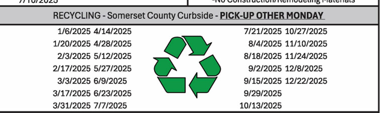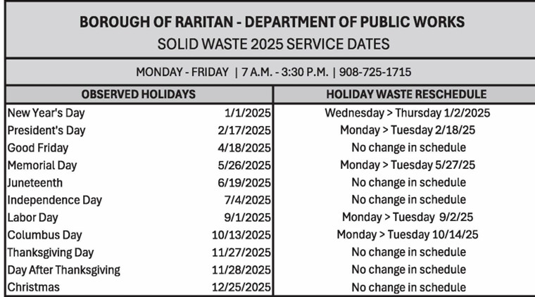 Borough of Raritan -Dept of Public Works - Service Dates with Holidays