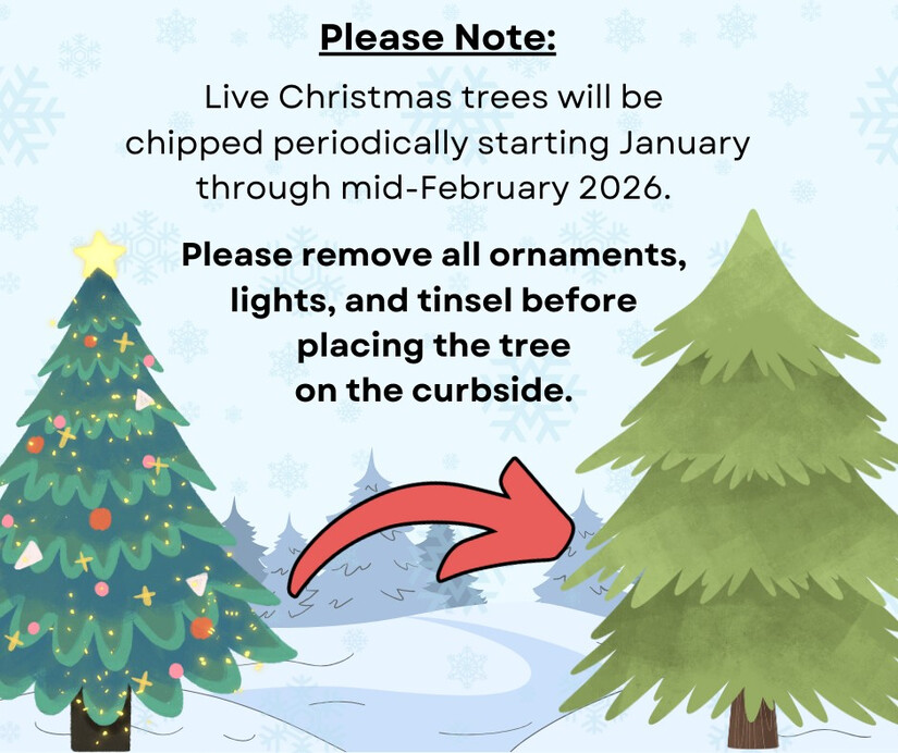Live Christmas trees will be chipped periodically starting January through mid-February 2026.