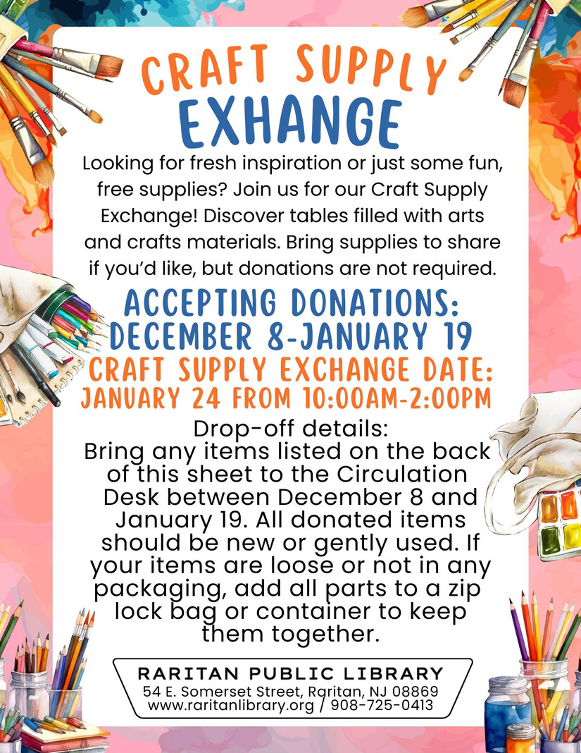 Raritan Public Library - Craft Supply Exchange Until January 19th