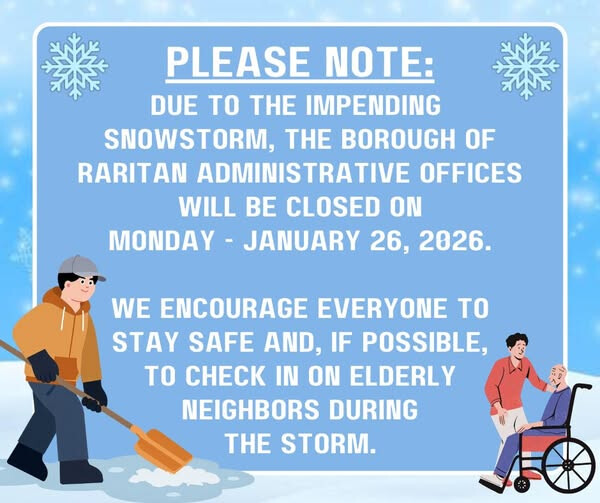 Raritan Borough Administrative Offices Closed on Monday, January 26th