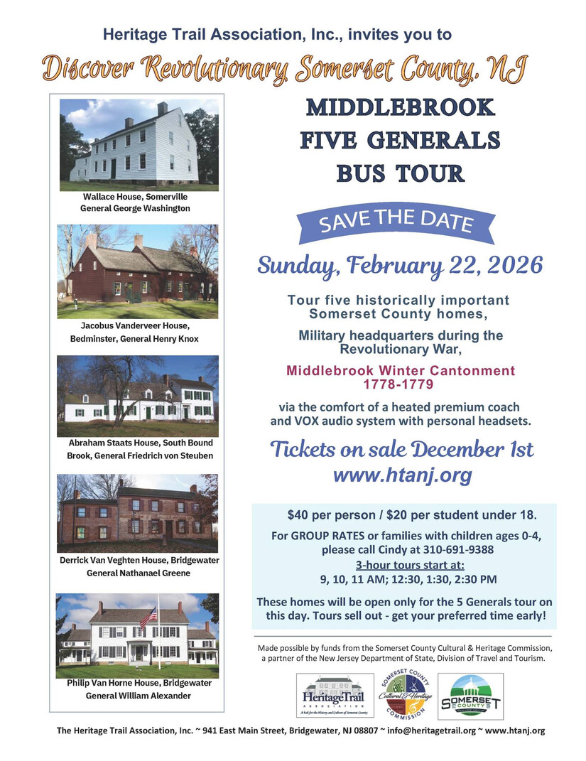 Heritage Trail Associations, Inc - Middlebrook Five Generals Bus Tour - Sunday, February 22nd.