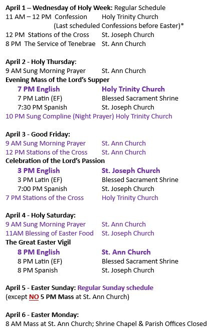 The Catholic Church Of St. Ann- Raritan, NJ - Schedule for April 1st - April 6th