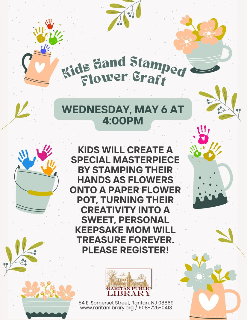 Raritan Public Library - Kids Hand Stamped Flower Craft - May 6th