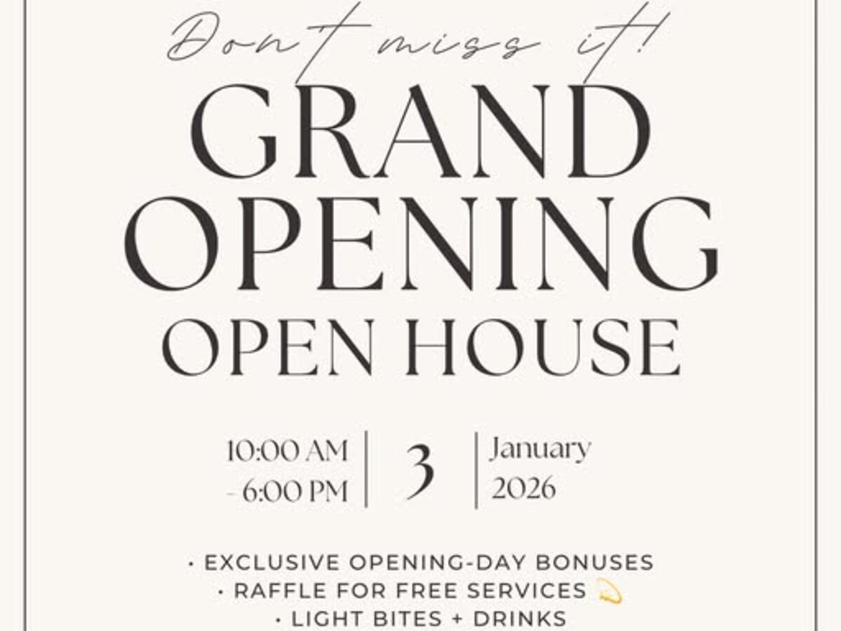 The studio’s Grand Opening Open House, running from 10 a.m. to 6 p.m., offers residents a chance to tour the new space, chat with the owner and lead esthetician, and learn more about the services designed to help clients look and feel their best. It’s a warm, personal introduction to a business built on expertise, artistry, and a genuine passion for skincare.