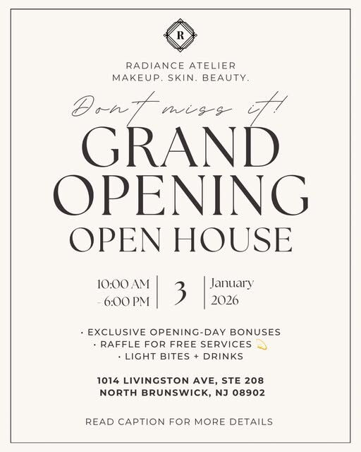 As North Brunswick continues to expand its small‑business landscape, Radiance Atelier adds a fresh, modern touch to the local beauty scene. Whether you’re a skincare enthusiast, a makeup lover, or simply curious about what the studio offers, the grand opening is a perfect opportunity to explore a new space dedicated to self‑care and confidence.
