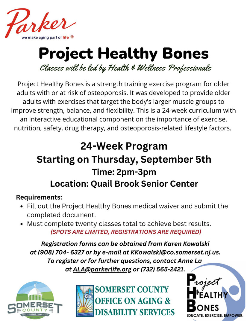 24-week body strengthening program will be available at the Quail Brook Senior Center in Somerset.