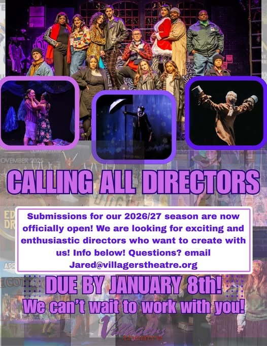 Villagers Theatre is officially accepting submissions for our 2026–2027 Season, and we’re thrilled to shape a year built around bold ideas and inspiring storytelling.This season, we’re focusing on vision, innovation, and impact — creating space for directors to dream big, think creatively, and bring meaningful work to our stages. We’re looking for artists who want to challenge, inspire, and connect with our community in fresh, exciting ways.Whether you imagine MainStage spectacle, BlackBox intimacy, or something entirely your own, we want to hear from you. Directors of all backgrounds, perspectives, and experience levels are encouraged to submit.