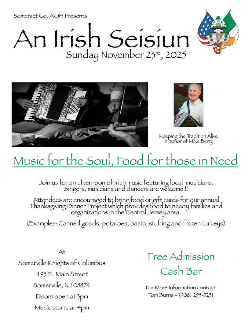 Save the date: AOH Somerset County NJ, Saint Patrick Division 1 - Event November 23rd