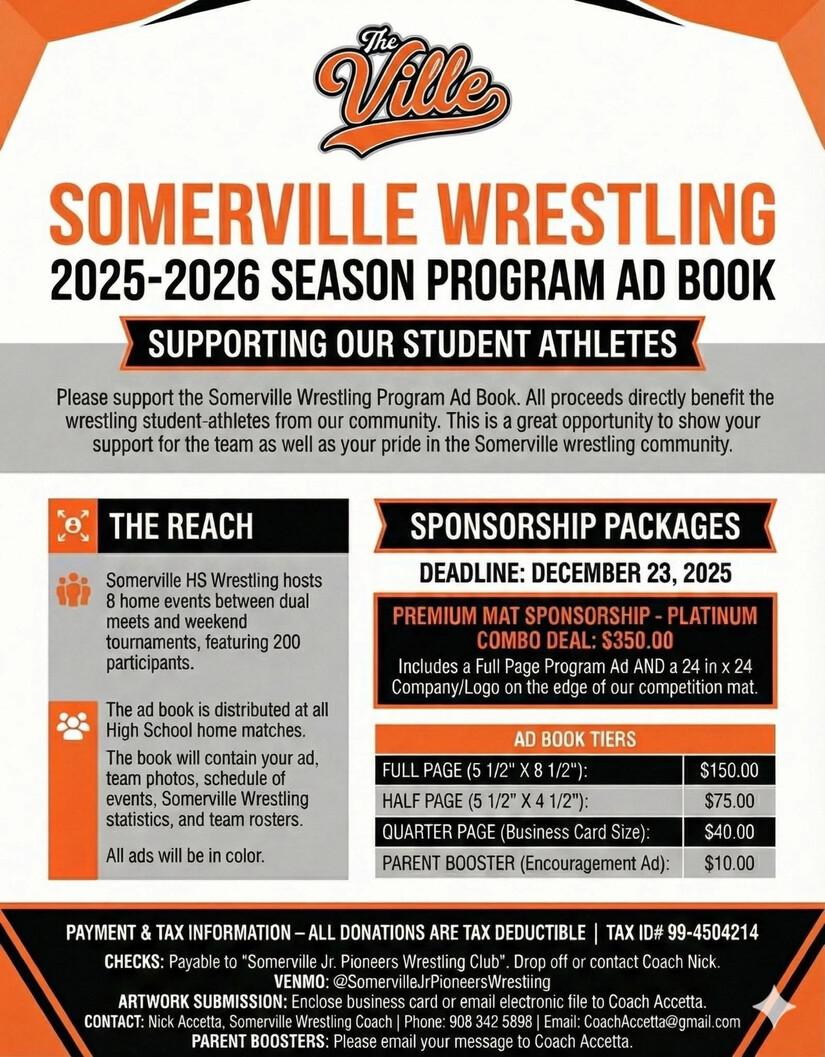 Support the Somerville Wrestling Team with a Season Program Ad Book