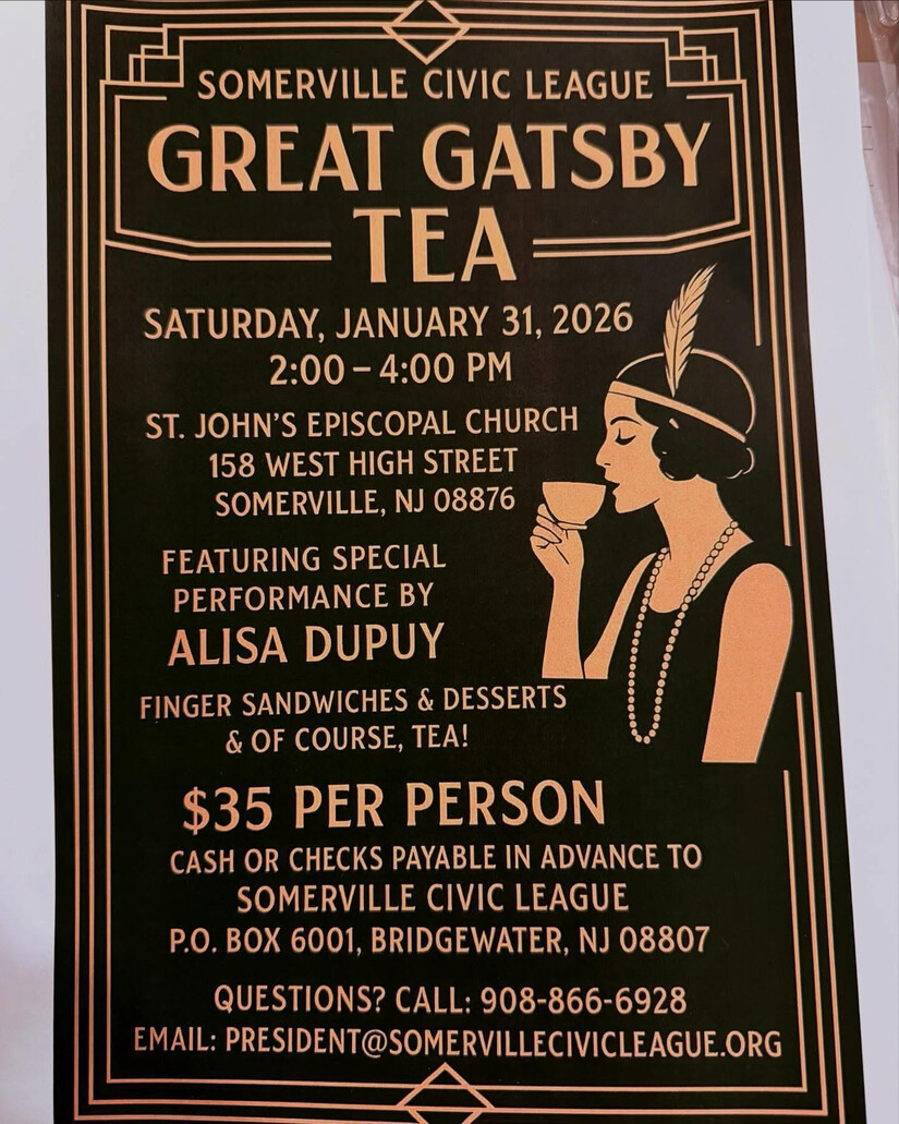 Somerville Civic League - Great Gatsby Tea on Saturday, January 31st in Somerville