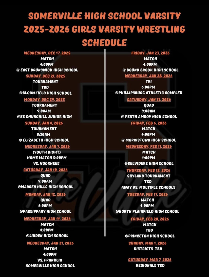 Somerville High School - 2025-2026 Girls Varsity Wrestling Schedule